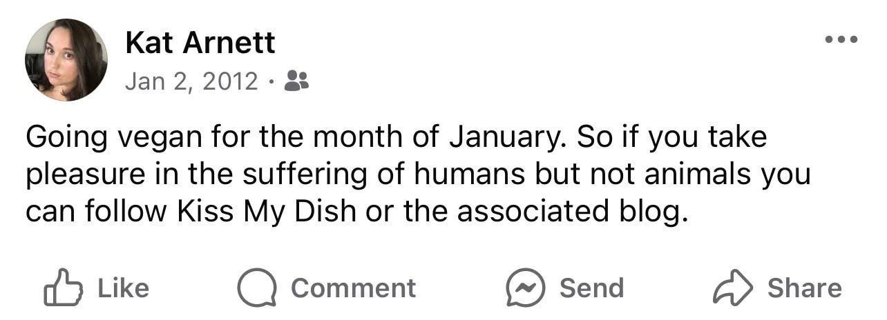 Back in 2012 there was no “Veganuary”. The UK non-profit that started Veganuary was formed in 2014 and I didn’t even know about them until a few years ago. It was a change that I made for myself.
